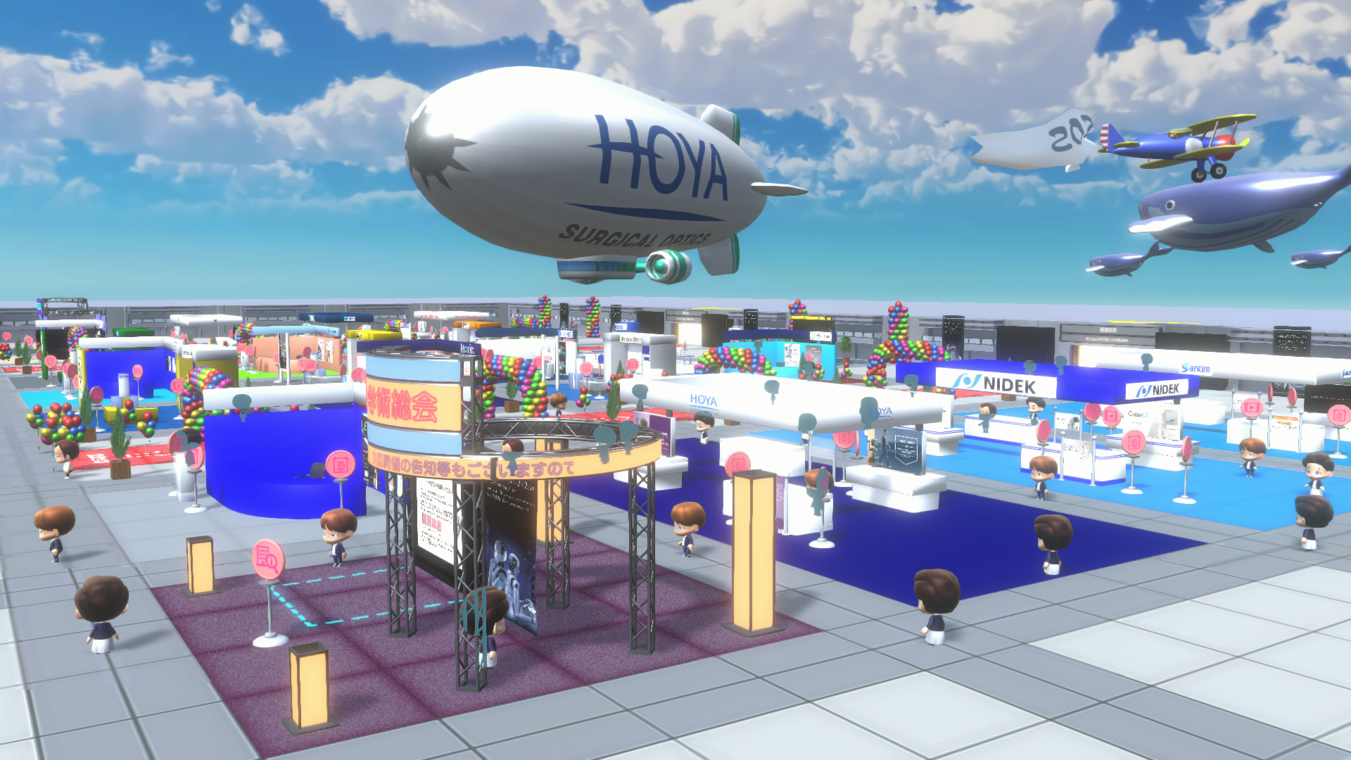 バーチャル空間をアバターで移動することで、参加者は本物の展示会に来たような感覚で会場を見て回ることができます。